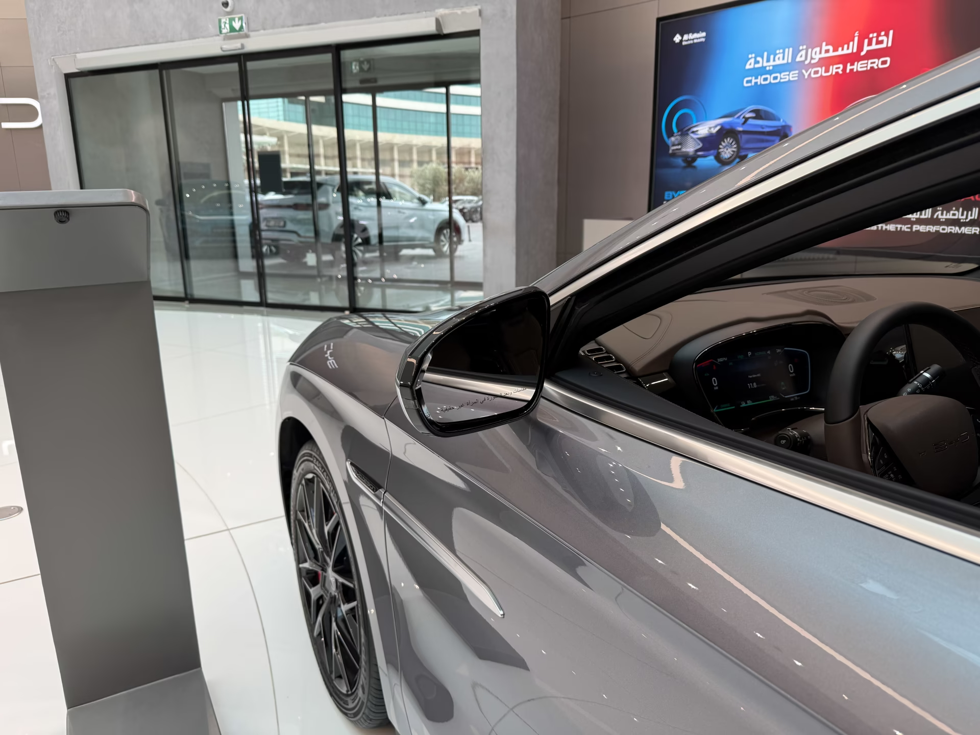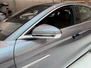 Gương chiếu hậu mỏng tích hợp đèn xi-nhan, cảnh báo điểm mù và chức năng sấy gương tiện lợi. Tay nắm cửa dạng ẩn giúp giảm lực cản gió và mang lại vẻ ngoài gọn gàng, tinh tế cho chiếc sedan điện này.